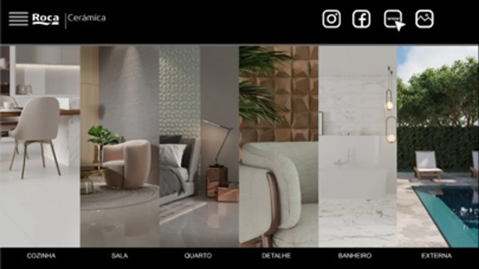 Com o Simulador Roca você pode visualizar os produtos aplicados em diferentes tipos ambientes disponíveis no app e fazer as escolhas perfeitas para o seu projeto.