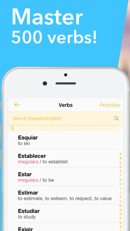 Perfect your spellings of all verb tenses, from the most commonly used to those more advanced. Verbs and tenses are organised into logical groups, as well as regular and irregular forms, allowing you to customise the test to best suit your needs.