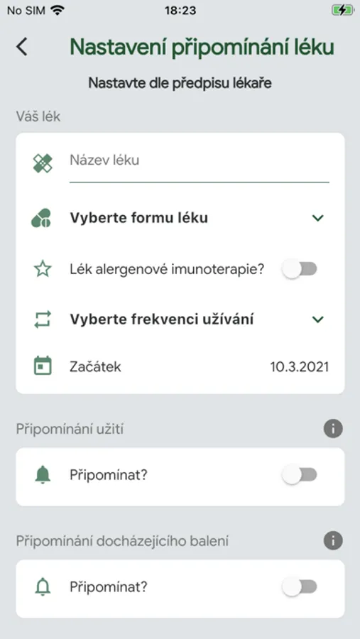 - Připomínač užití léku