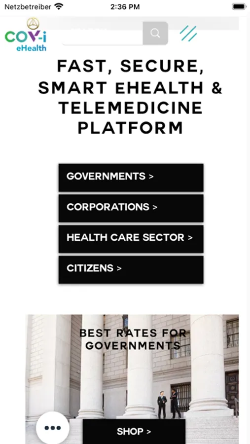 eHealth & Telemedicine Marketplace for GOVERNMENTS, CORPORATIONS (AIRLINES, EVENTS, HOTEL GROUPS), HEALTH CARE SECTOR, CITIZENS & SUPPLIERS. The COV-i marketplace provides anti-viral products and services to help secure lives with preventive measurements, medical products, the advice of experts, virologists, realtime world monitoring, tests, and more.