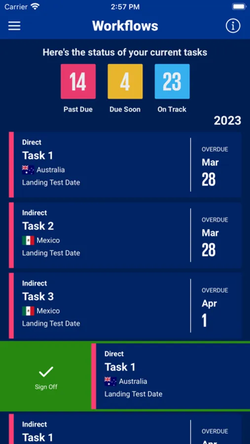 Signing off or skipping a tasks in the Workflows section are a swipe away. Swipe right to sign off, swipe left to skip and if you make a mistake, just shake your device to undo your last action.