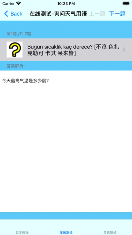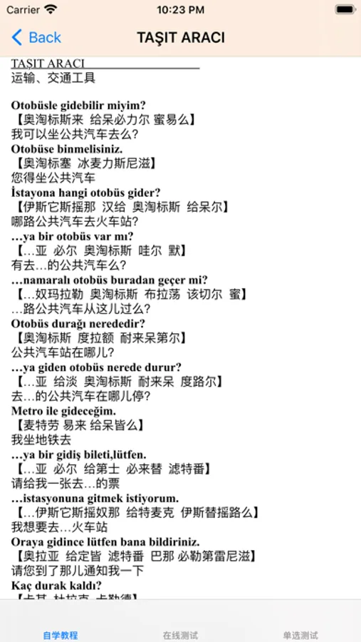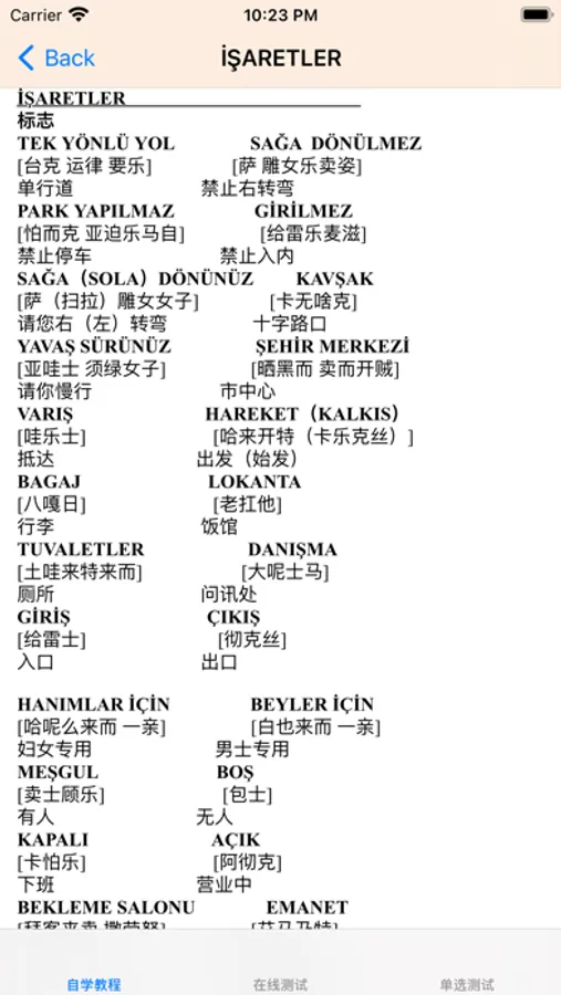 土耳其语自学大全,给力推荐。内容丰富,提供了土耳其语学习的自学教程,在线测试,翻译等内容。是自学该类语言的得力助手。