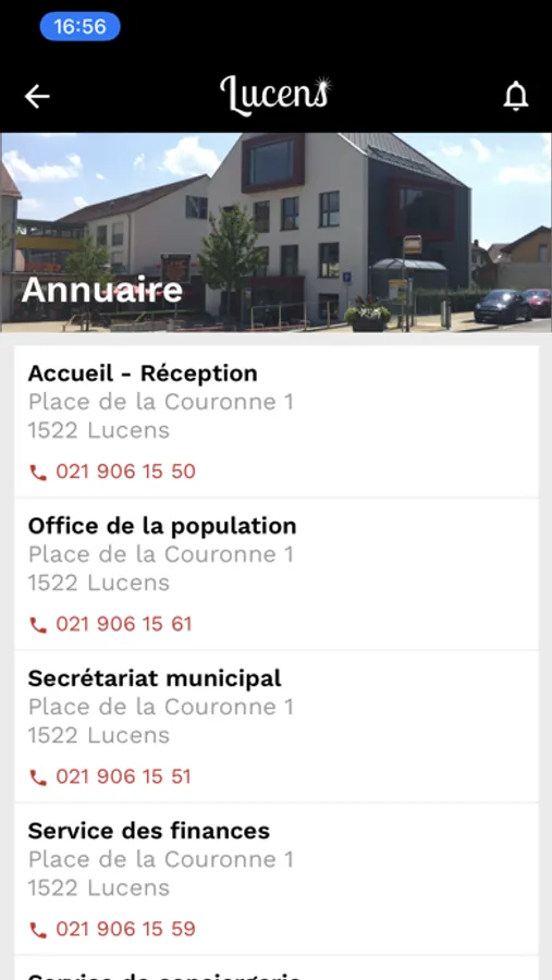 L’application de la Commune de Lucens vous donne accès en tout temps aux contenus suivants :