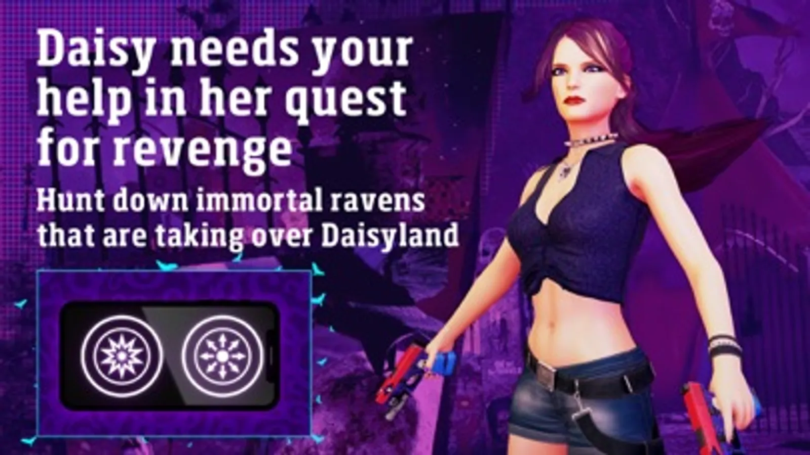 Be Daisy’s hero! Grab a gun and shoot the ravens as they fly. This spectacular fast-paced FPS (TPS) adventure game takes you into a fantastical carnival underworld where Daisy needs your help to exact revenge and eliminate the immortal ravens that swarm around her taking over Daisyland.