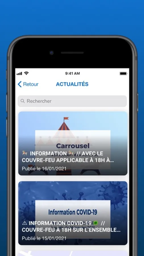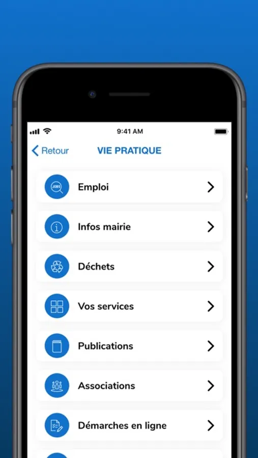 • Consultez à tout moment les informations pratiques de votre ville : services municipaux, menus scolaires, démarches en ligne, liste des associations, numéros d'urgence, ...