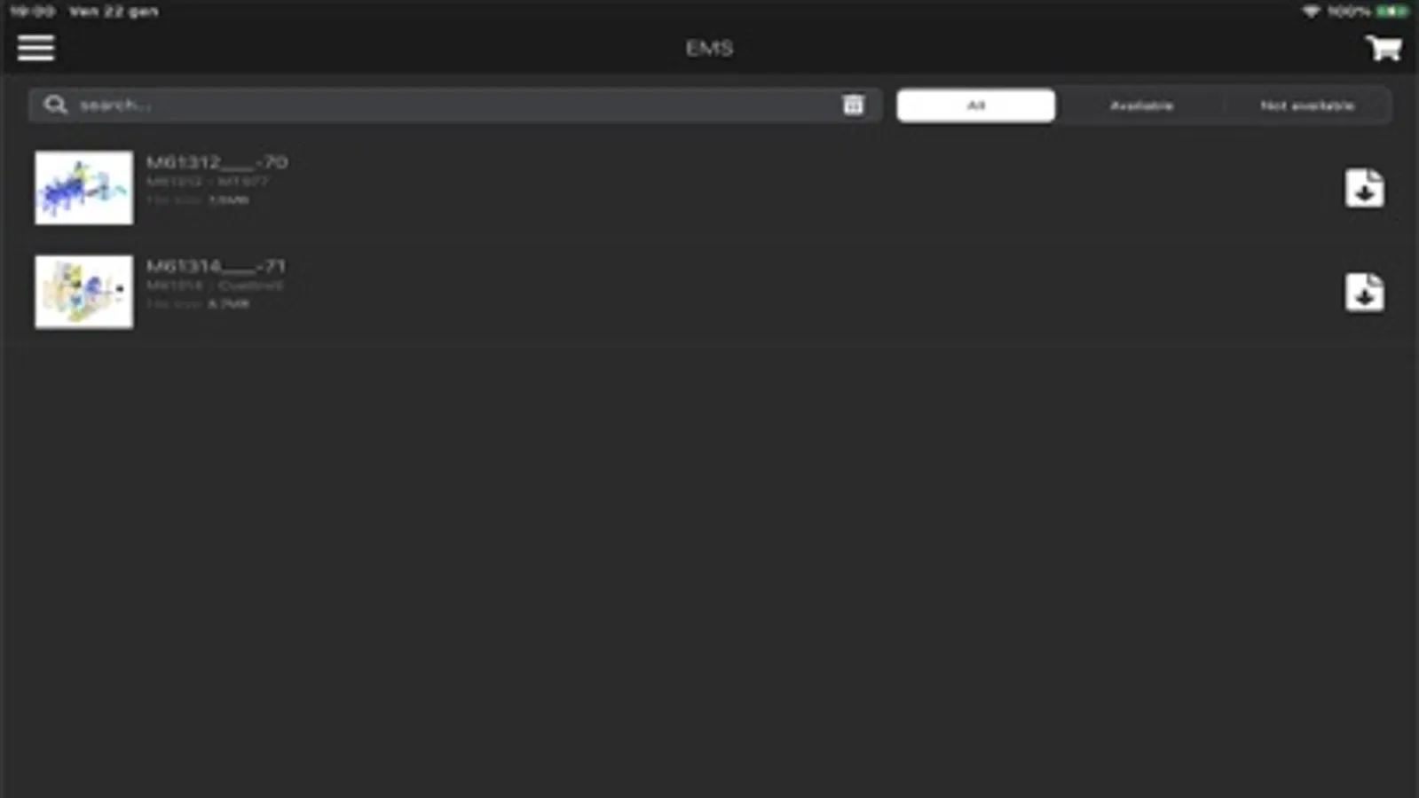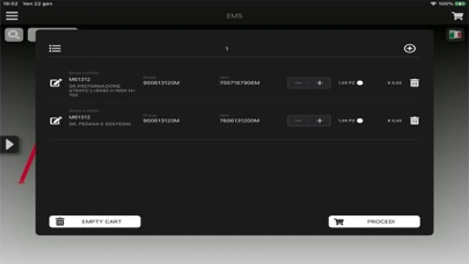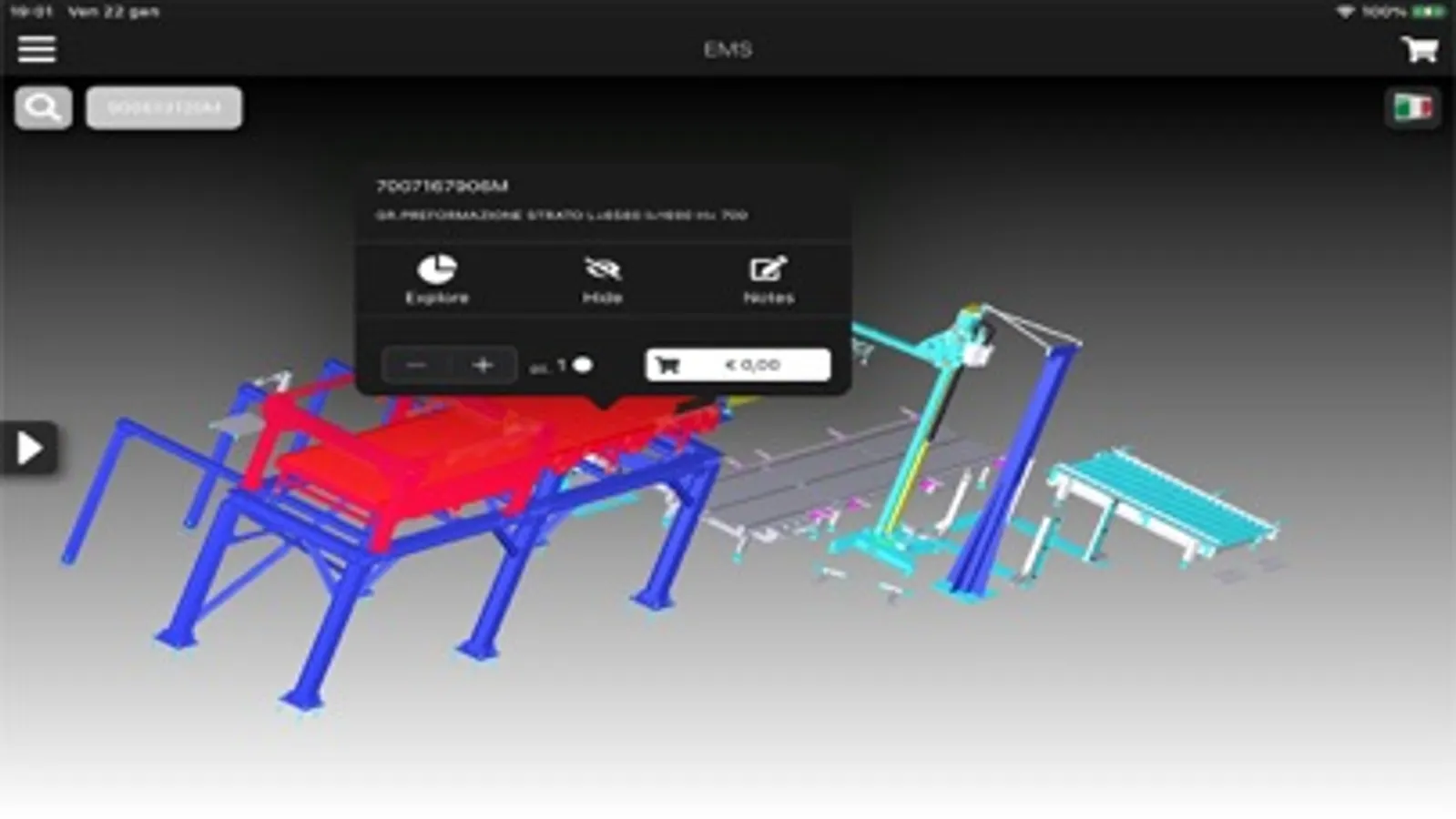 L'app permette di scaricare il catalogo della parte desiderata della macchina. L’uso del tablet di fronte alla macchina permette una rapida identificazione del ricambio desiderato.