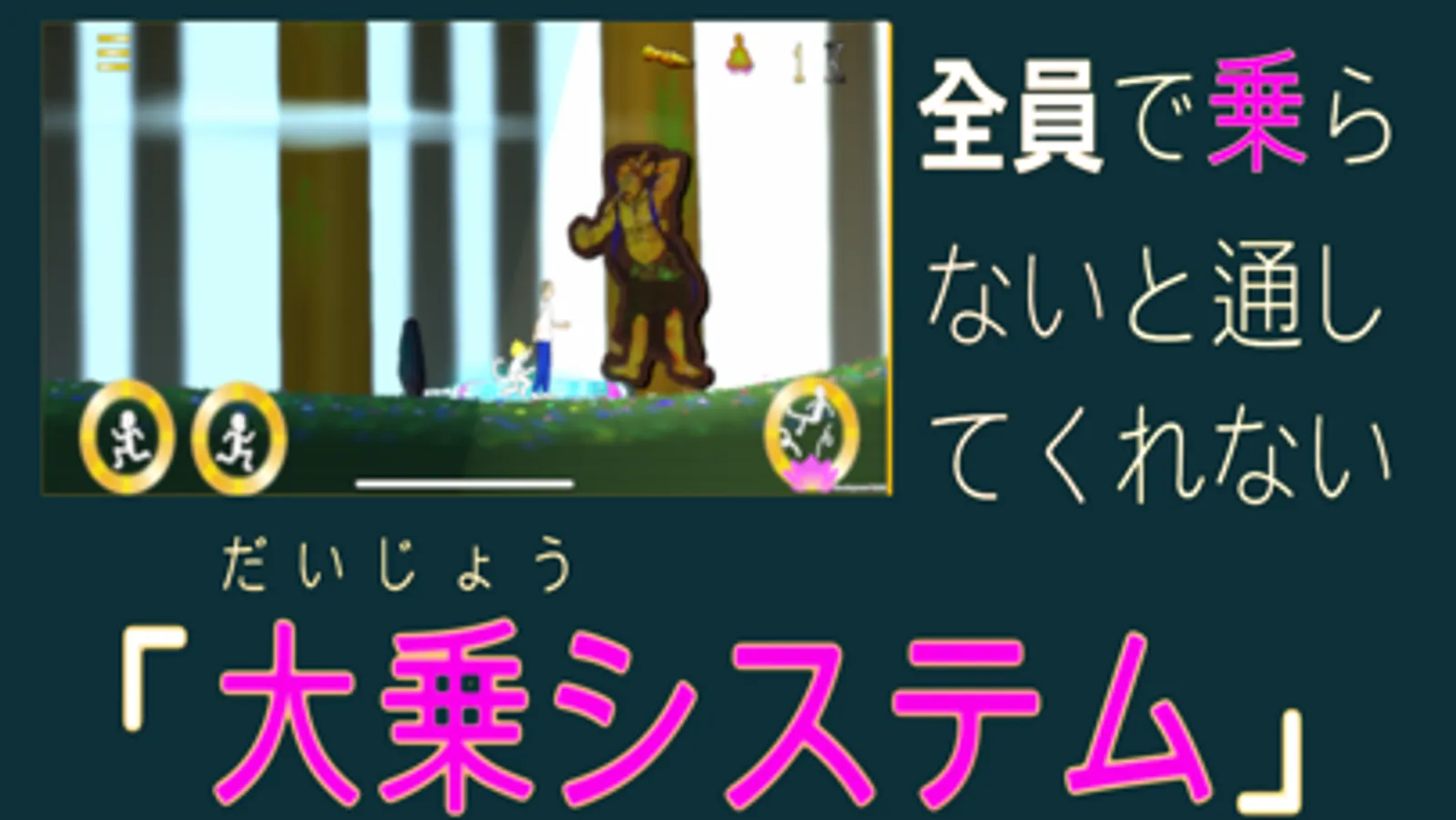 ◆同時に2人以上を操作する「同行二人システム」と、みんなでゴールする「大乗システム」で激ムズに。