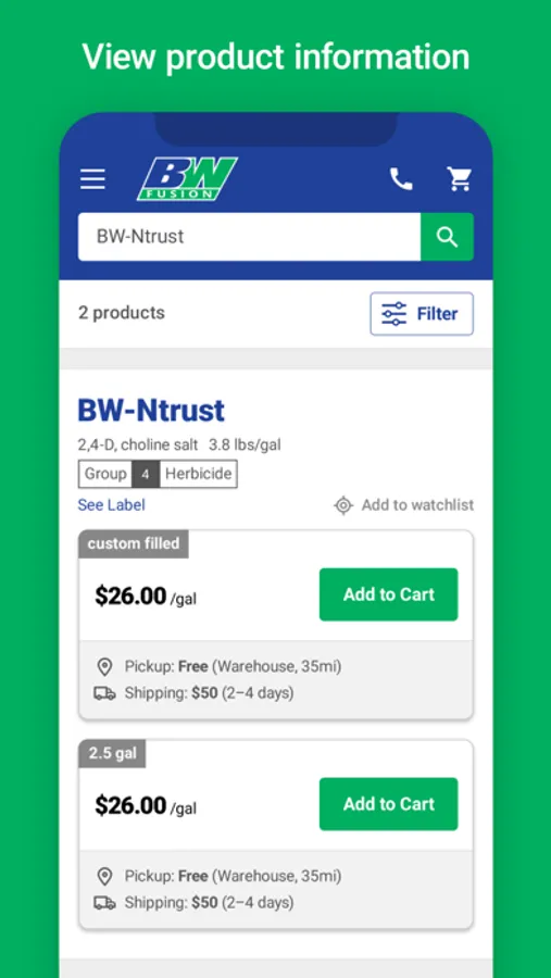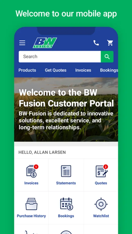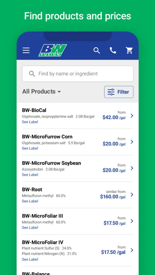 BW-Fusion was founded as a partnership between Biodyne USA and Wells Ag Supply to focus on bringing innovative Fertility, Nutritional, and New Technologies to the Agricultural Marketplace. Combining best-in-class products along with the BW 365 soil / tissue program, provides growers the tools and resources necessary to identify limiting factors and address them accordingly in real-time with results-focused interventions, to maximize yield potential and ROI. This mobile app can be used to easily do business with BW-Fusion by: