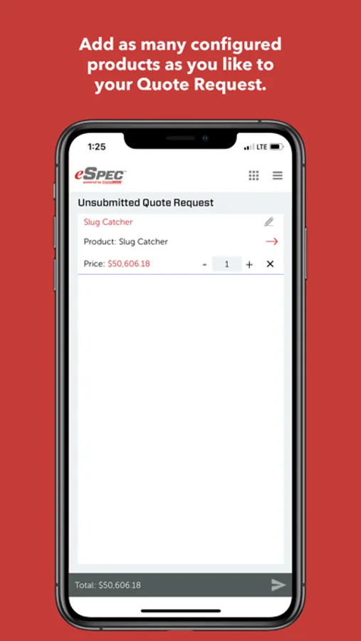 After you finish configuring your equipment, eSpec generates a complete technical quote with estimated budgetary pricing.