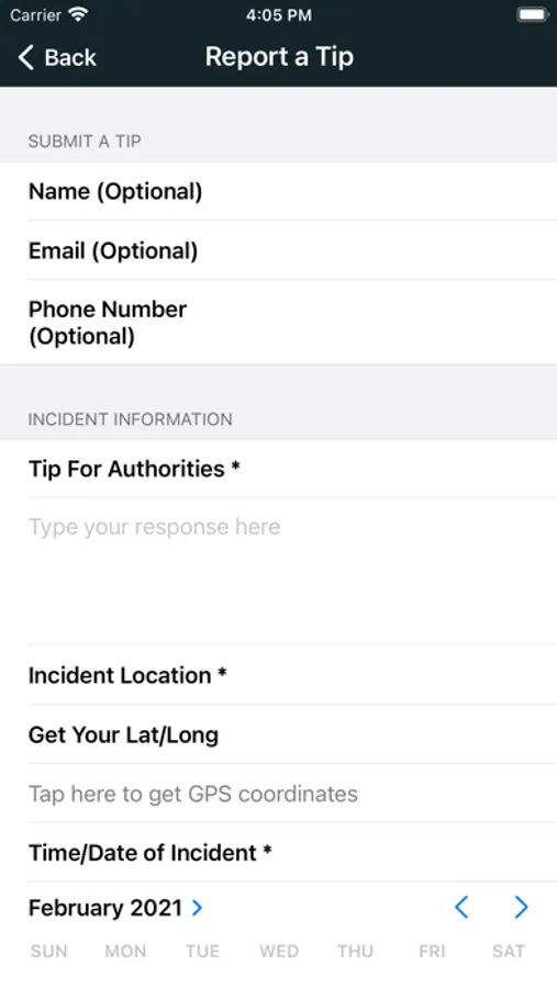 This app is not intended to be used to report emergency situations. Please call 911 in an emergency.