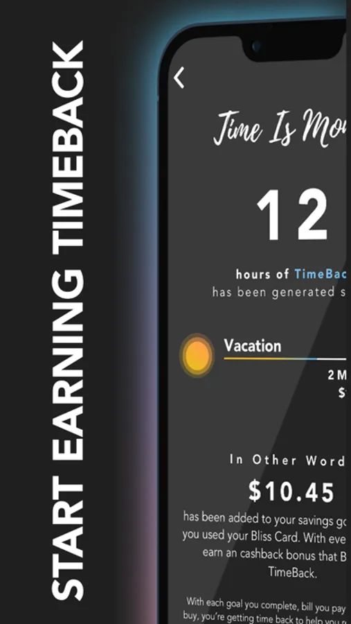 The app provides a host of tools to make managing your money more effortless. Whether it’s our debit cards that give you TimeBack (Bliss’ cash back program), in-app features such as Split or Forecast, or having your dollars invested in U.S. Treasury Bills, Bliss is a reimagined banking experience.