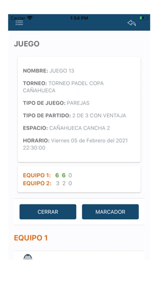 • Conocer la información de cada partido en el que participes como: lugar, horario, participantes.