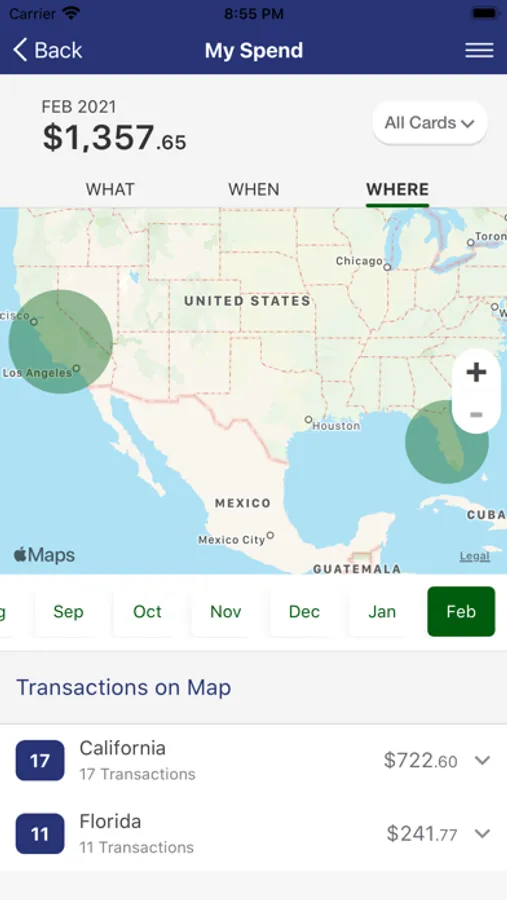 • Clearly see your purchases with cleaned up merchant names, location on a map and store info.
