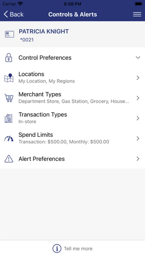 • Stay in control with real-time alerts and controls. Lock your card, set spending limits and determine where your card can be used.