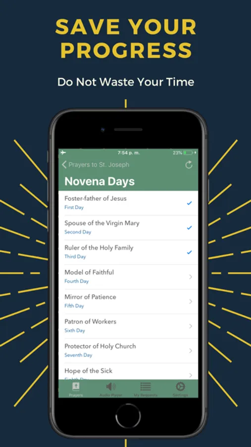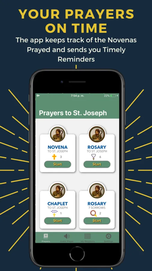 Practical Novena to Saint Joseph. This app allows you to pray the Novena daily and record your progress to help you easily continue the next day. Save your own prayers by adding a photo to make it easier for you to make your requests every day.