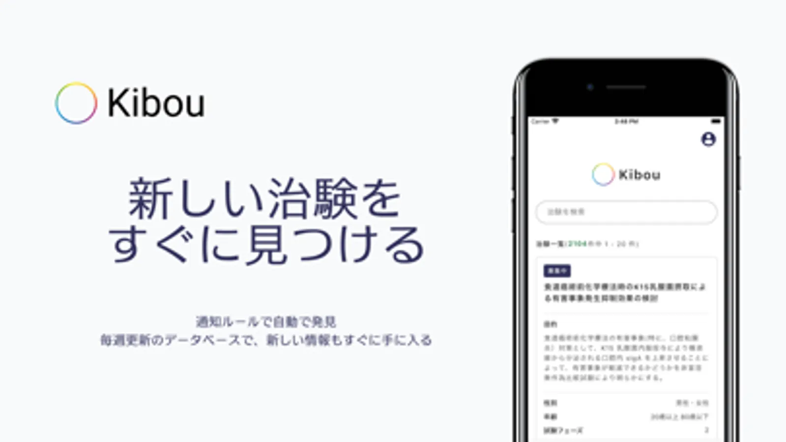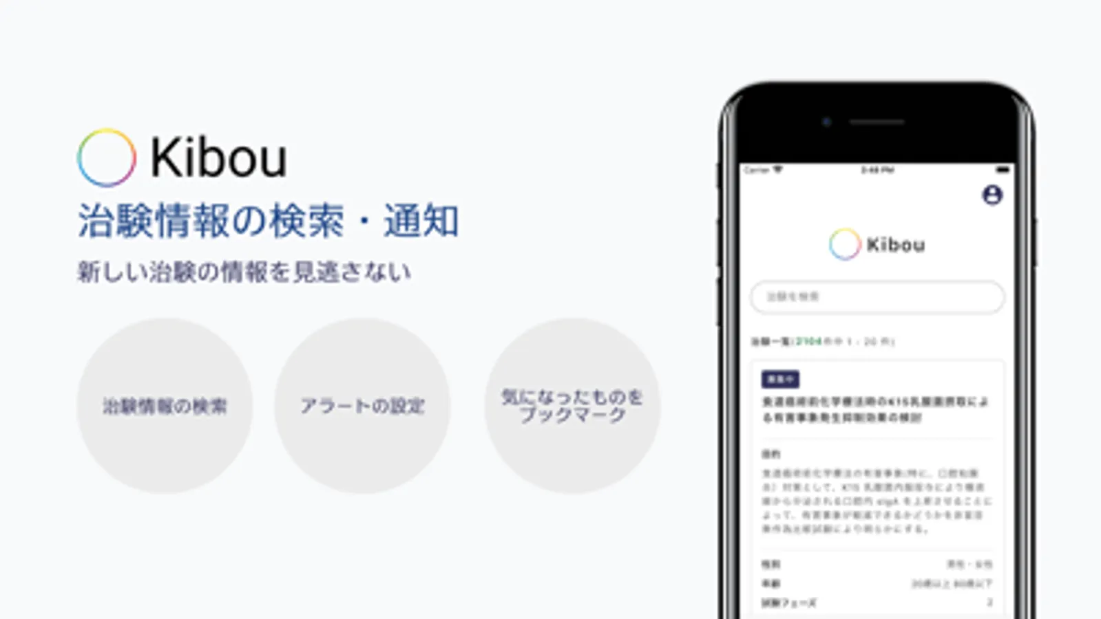 治験情報の検索 & 通知を行うアプリです。