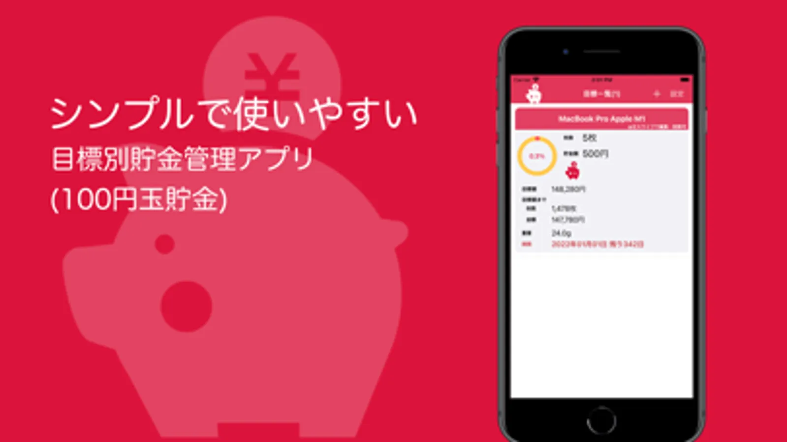 ・貯金目標を削除できます。(左スワイプで削除可)