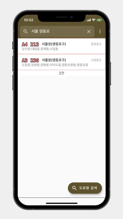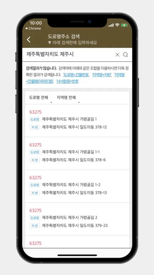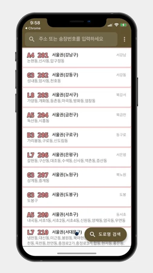 주소를 입력하면 해당 지역의 지점코드가 검색되어 표시됩니다.