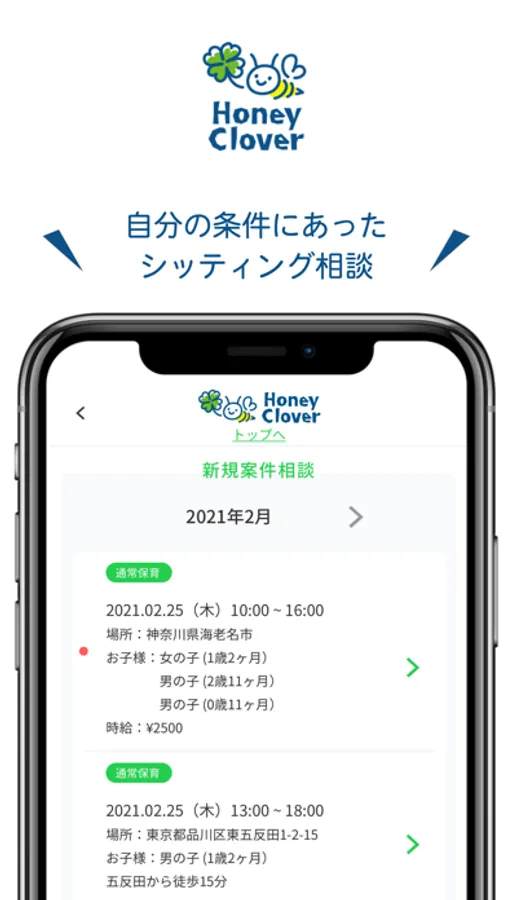 固定時給でご勤務いただく際は、ご勤務可能なエリアの中で予約が発生しますと、該当ベビーシッター様全員に予約内容が通知され、お引き受け可能な案件であればハニクロ事務局に返信をしていただき、お仕事が決まります。複数のベビーシッター様からお引き受け可能な返信がある場合、予約場所からの距離などを検討し、ベビーシッター様をハニクロ事務局で選考をさせていただきます。