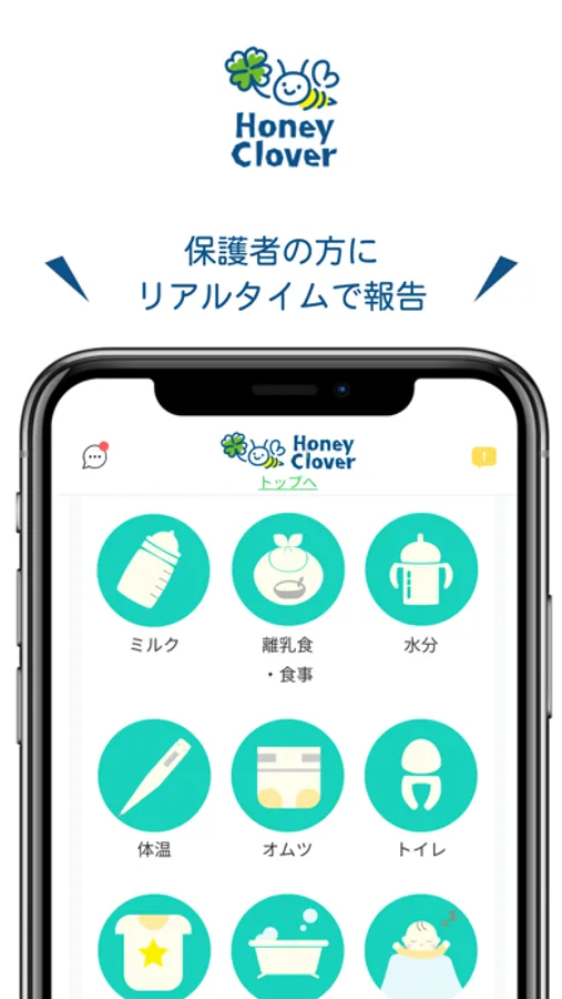 保育中のレポートをシッター様が入力すると、リアルタイムでお客様の元に届きます。「オムツを交換しました」「睡眠中の呼吸を確認しました」など、現在のお子様への保育状況を逐次ご報告いただくことができます。ハニクロ事務局もオンラインレポートの状況を確認しておりますので、必要に応じてシッター様をフォローし、お客様からもシッター様にご要望などがございましたらチャット機能でご連絡をいただくことがあります。