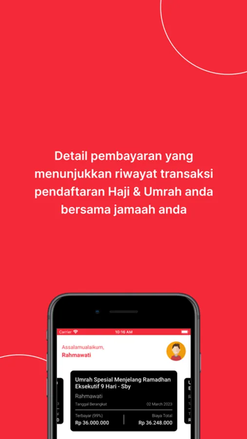1. Pembelian paket umrah dan haji, pelanggan dapat melakukan pembelian paket umraj dan haji melalui aplikasi ini