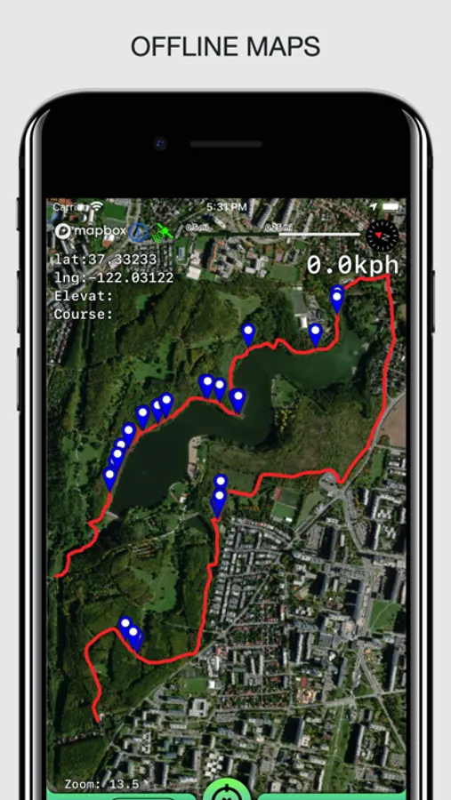 Create, import, export tracks with waypoints. Supports offline maps, no time limits, no ads, no in-app purchases.