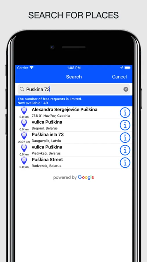 - several modes of map orientation - by the heading of the phone, in the direction of travel, centering and to the north.