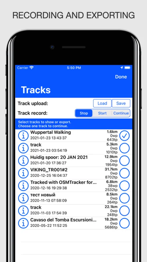 - export and import of tracks and waypoints to various services - Open Street Map and others.