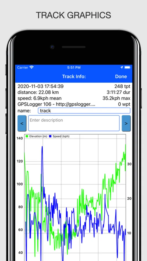 - extended track information: average and maximum speed, track duration by time and distance, number of waypoints.