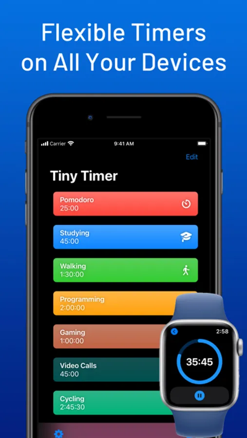 Tiny Timer is an elegant, customizable, and flexible timer app on your iPhone, iPad, Apple Watch, and Mac with M1/M2 chip. In comparison to the pre-installed timer app, Tiny Timer offers you the following advantages: