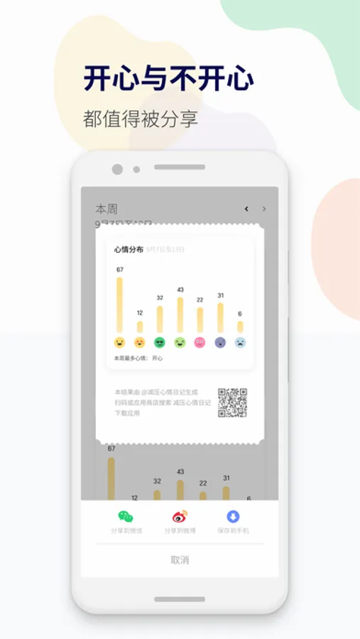 记录心情是最好的减压方式。不需要写一个字的心情微日记,用20种不同表情来快速记录此刻心情。天气信息同步记录,好天气和好心情同样值得记录;情绪记录场景选择,工作和爱情哪个更能让你伤心……从此,记日记变得如此简单!