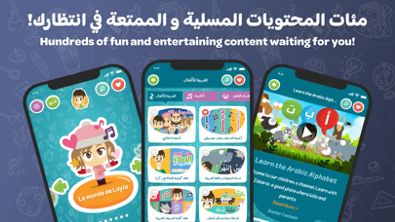 Our APP is packed with great educational content that will make your children laugh and smile while teaching them alphabet, colors, shapes, names of animals, fruits, vegetables and much more… in Arabic, English and even French.