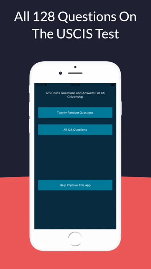 This is the best app in the App Store to help you practice the questions that will be asked when you take the USCIS US Citizenship test. You can use this app to answer all 128 questions and remember what was the correct answer for each one of them.
