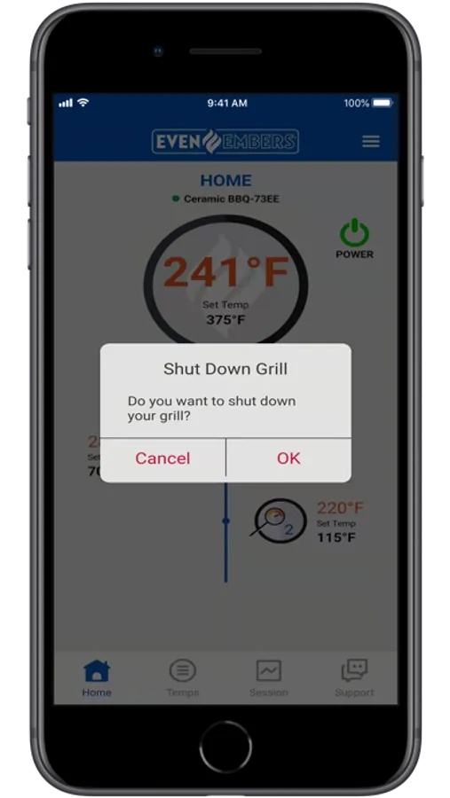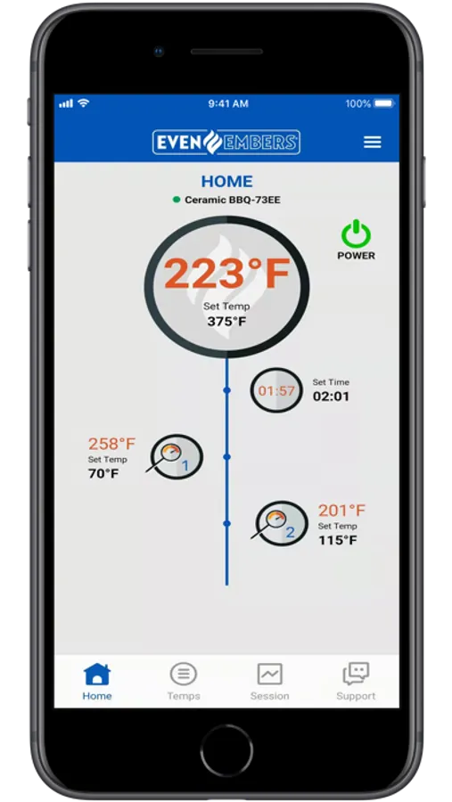 With the Even Embers Grilling App, there is no need to run back outside to the grill when you can change the set temperature or power down your grill with the tap of your finger.