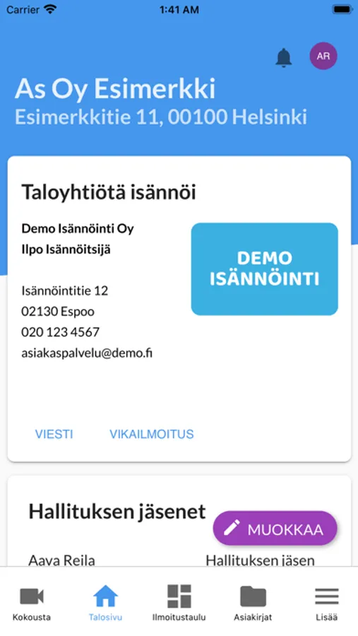 - Tarkastella taloyhtiön perustietoja ja yhteyshenkilöitä