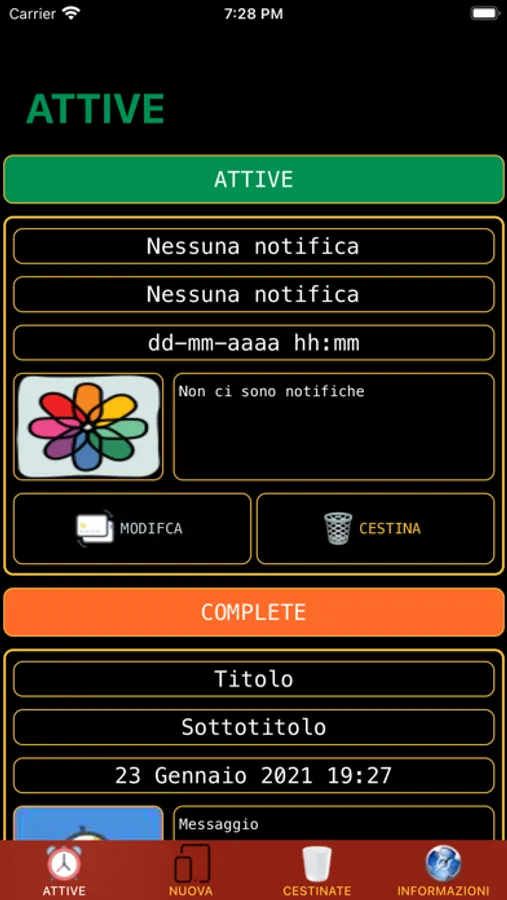- In questa applicazione puoi aggiungere immagini alle tue notifiche che saranno visibile al posticipare della stessa.