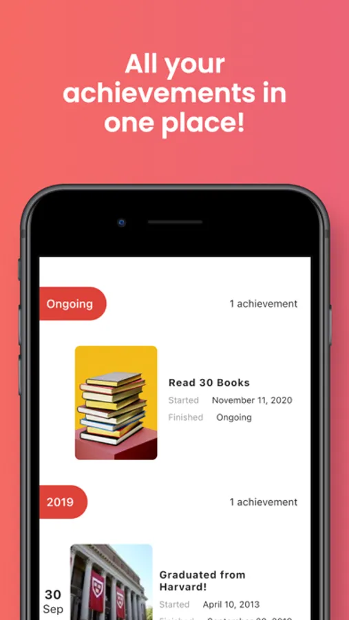 MyDone will display all your done goals in one place year by year. You can also add a picture or write about your journey to finish this goal.
