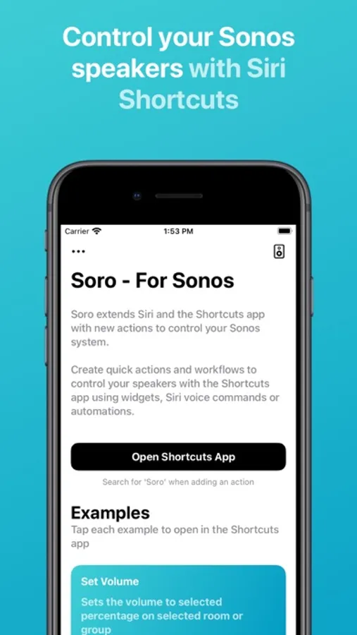 Soro extends Siri and the Shortcuts app with new actions to control your Sonos speakers and devices.