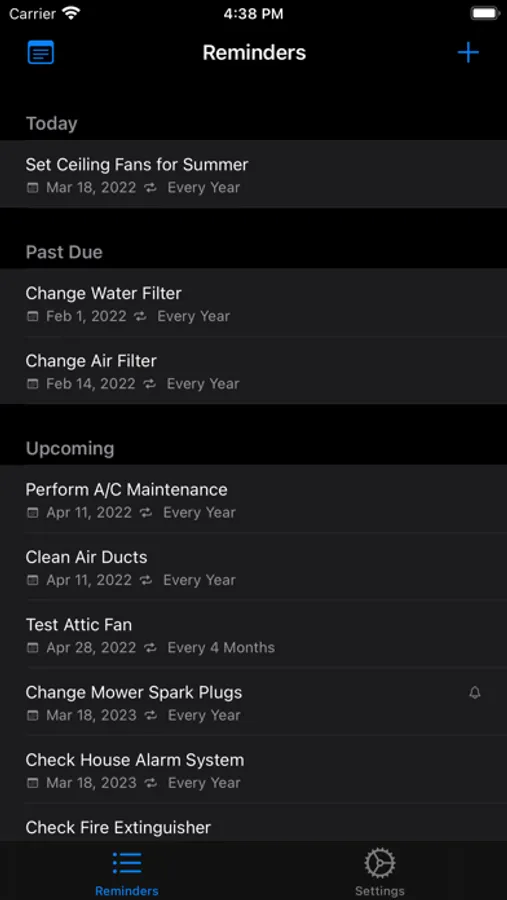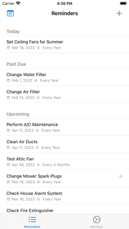 • Home Reminders organizes each reminder for you automatically to show Past Due, Due Today, and Up-To-Date Reminders