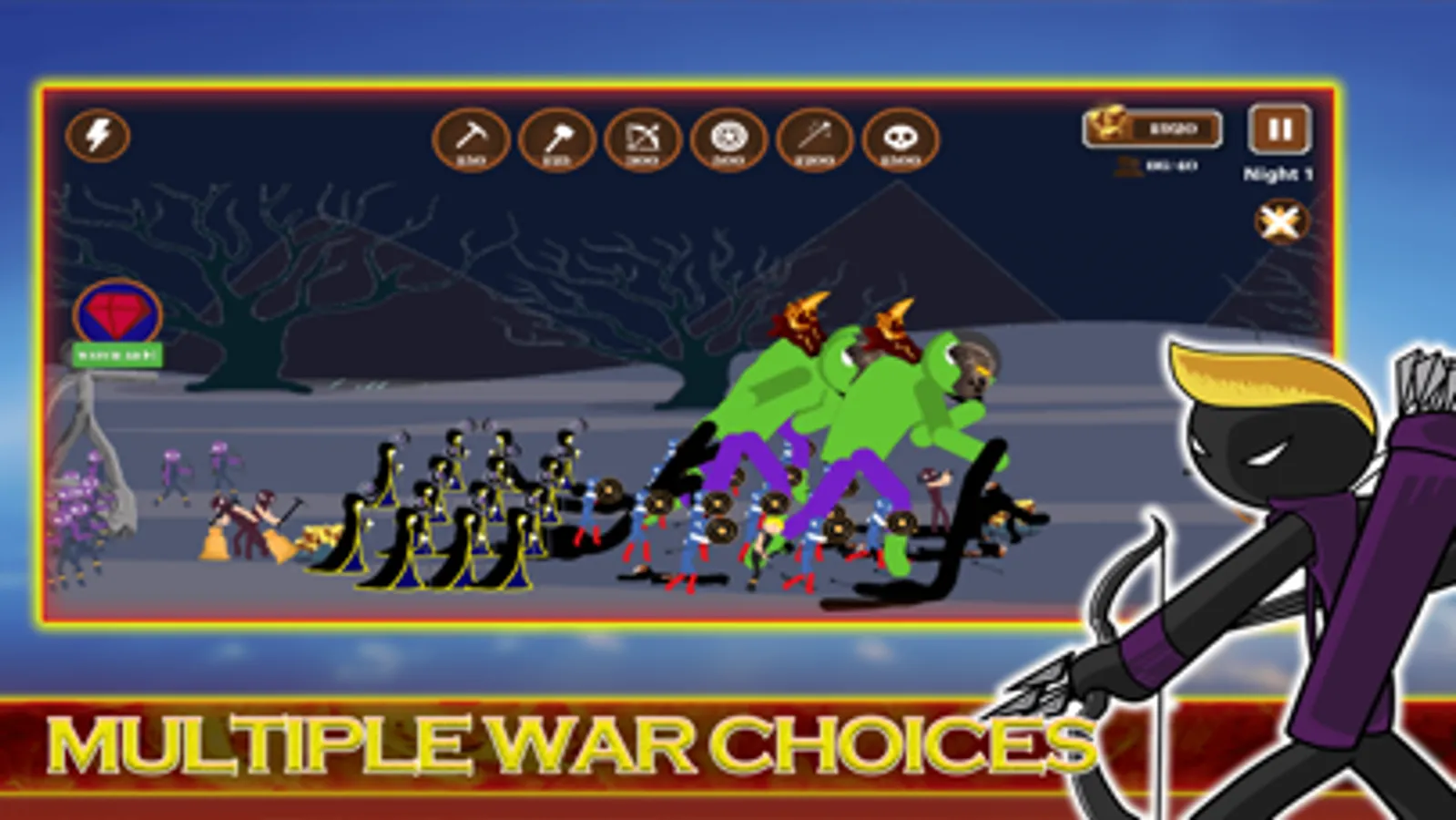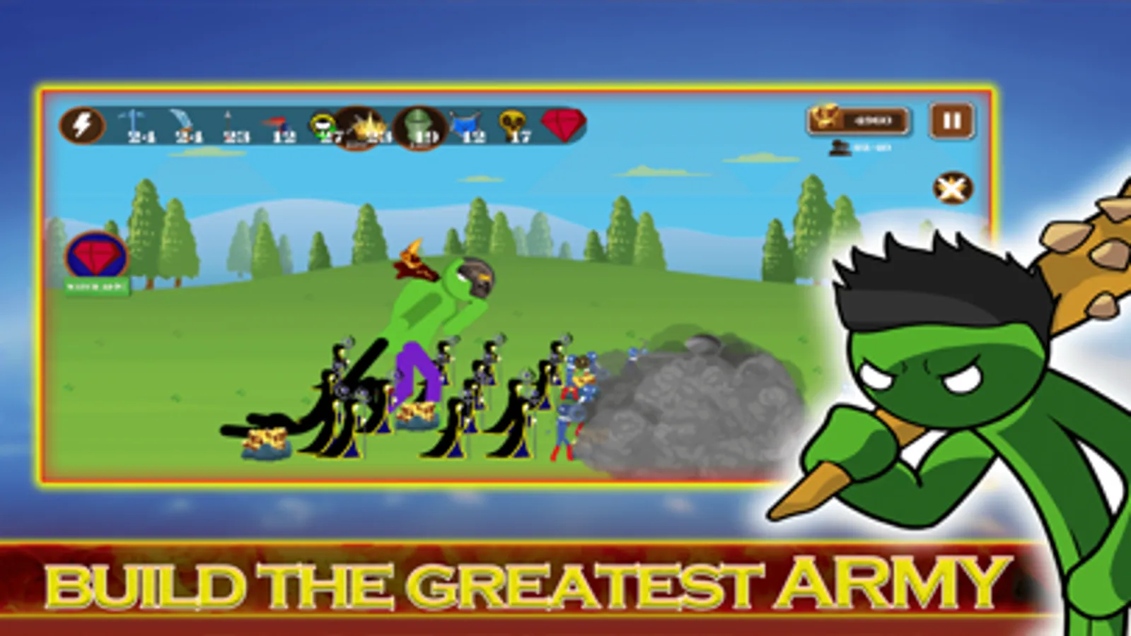+Variety of Stickman characters : Miner, hammer stick, knight, Archer, Wizard, Monster