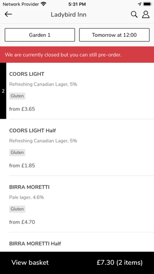 Order food and drinks for delivery direct to your table at the Ladybird Inn. Monitor your order status and pay online via credit card.