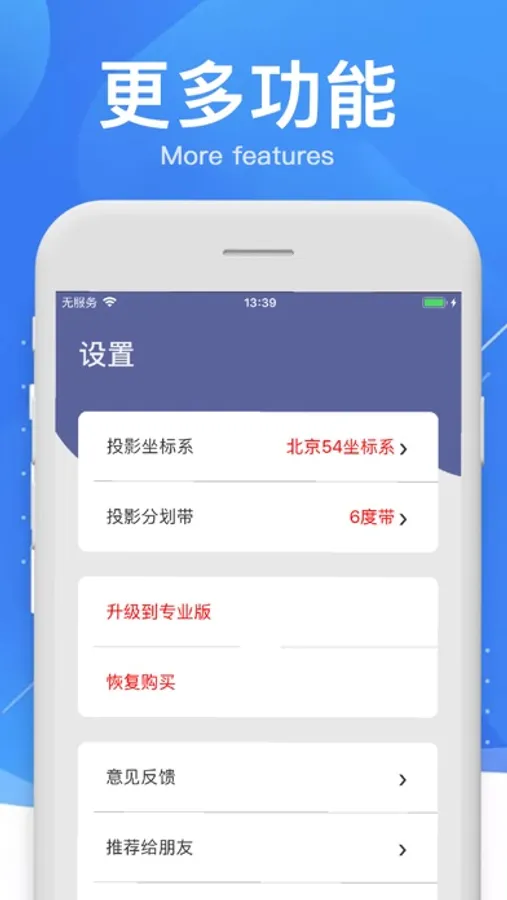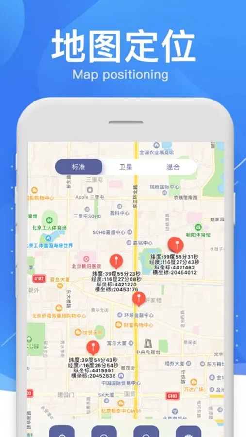 1.支持使用GPS或者网络进行定位,获取当前位置信息并提供地理坐标和高斯坐标显示.