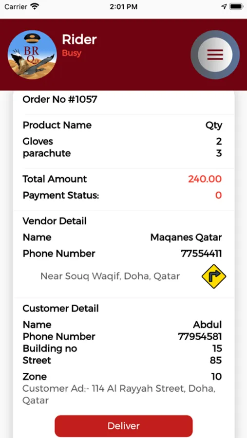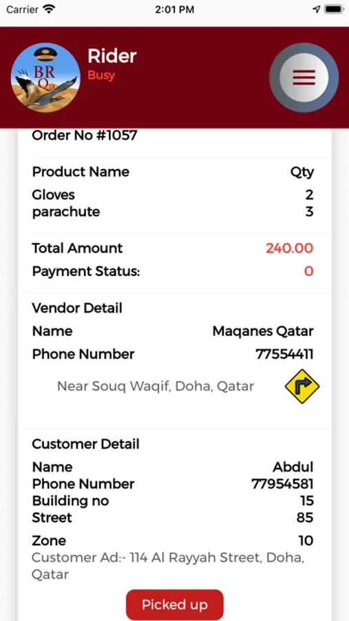 BR QTR Rider app is for the BR QTR Customer App, with this app driver can get the new order which is booked by BR QTR customer app.