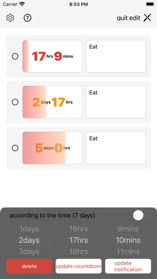 7-day countdown timer, the minimum unit is 1 minute.