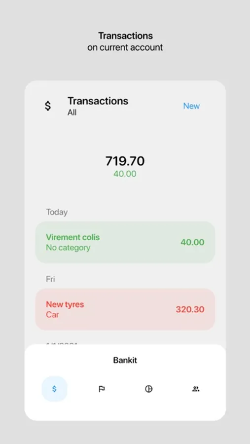 - Transactions: if you spend or save money, record it to Bankit so you can see how much you have on your current account.
