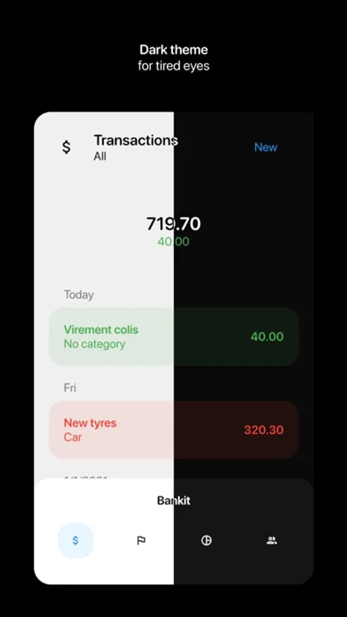 Bankit will help you manage your budget. You can add every transactions you make and categorise them in order to have an overview of your expenses.