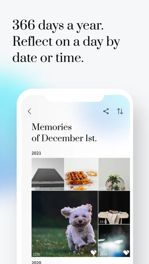 You can select a desired date among 366 days and collect all the photos of your life taken on that date at a glance.