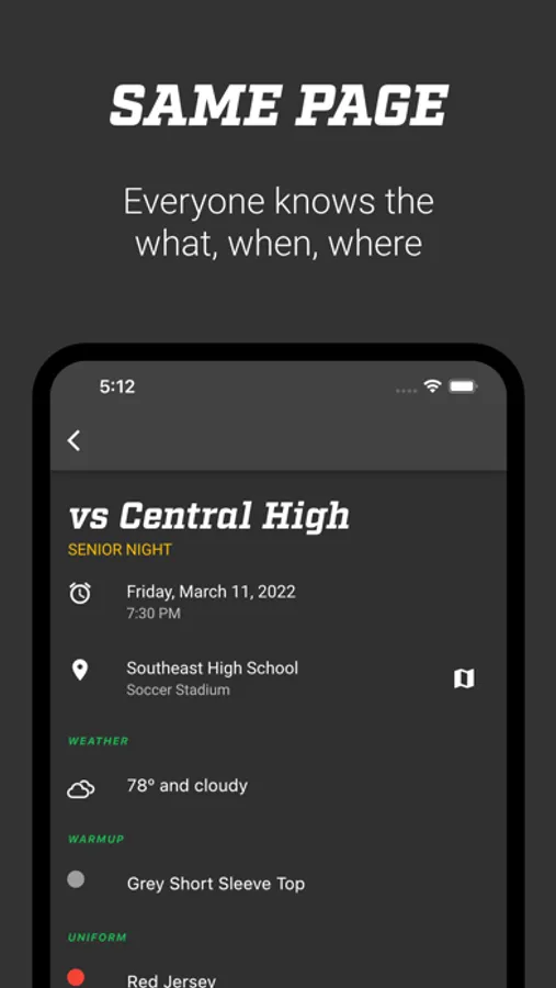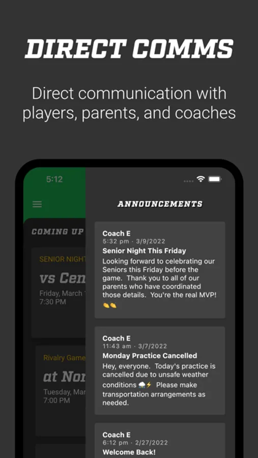 The simplest way to keep your entire team of players, parents, and coaches on the same page. Reach your team where they are: on their mobile devices. Ensure that all of your parents and guardians know what their children know about game details, practice cancellations, big news, and more.