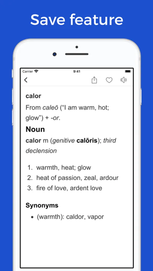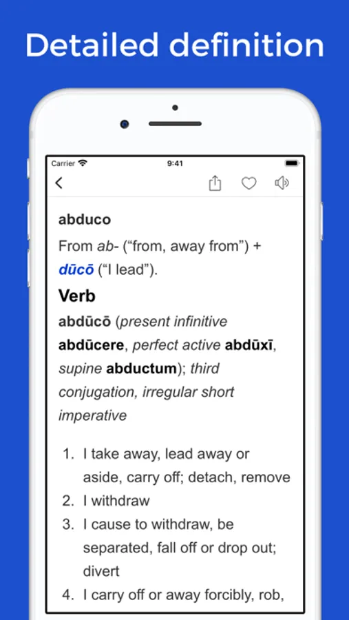 - Meaning, synonym, antonym, example sentences, etymology, etc.