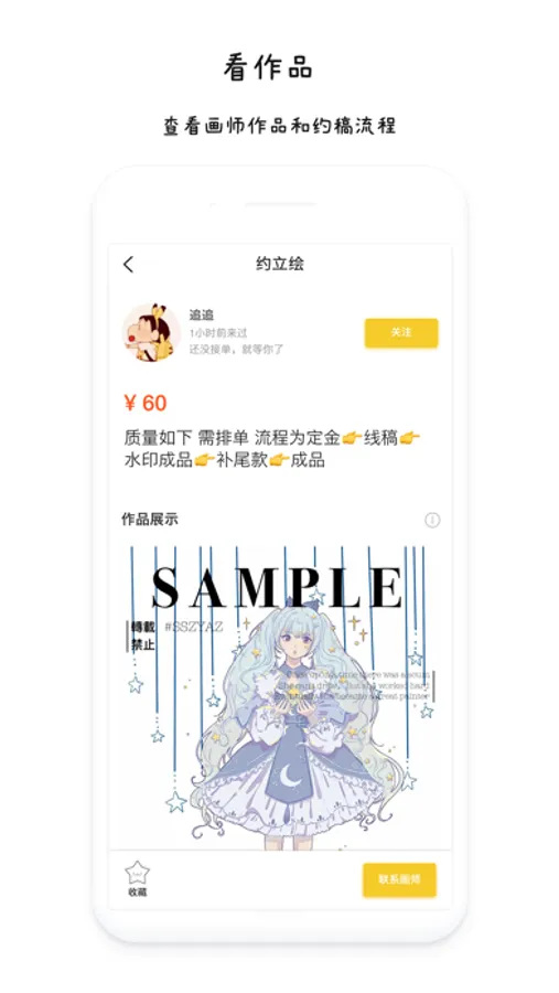 我们是一个画画约稿的平台,画师和金主可以在上面双向选择,也可以再动态发约稿需求,觉得合适可以添加联系方式,自由交流约稿具体要求。